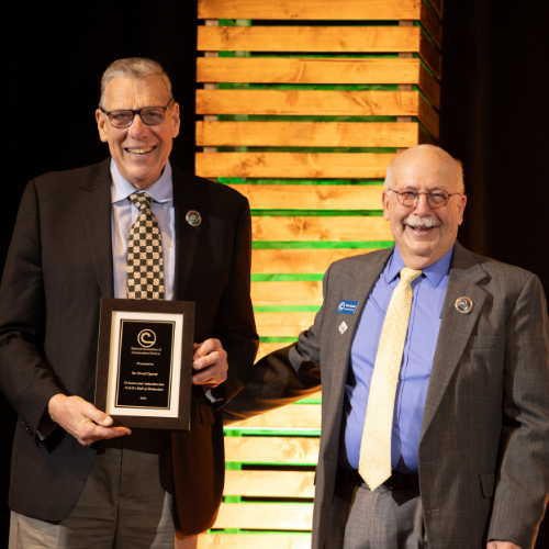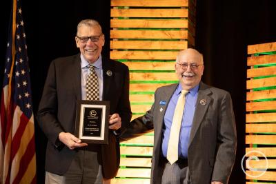 Dr. Orval Gigstad accepts the National Association of Conservation Districts (NACD) Hall of Distinction Award from NACD Secretary-Treasurer Karl Jensen in San Antonio, Texas, on Feb. 17, 2026. For more than 30 years, Gigstad has been a steadfast champion for natural resources stewardship at the local, state, regional, and national levels.